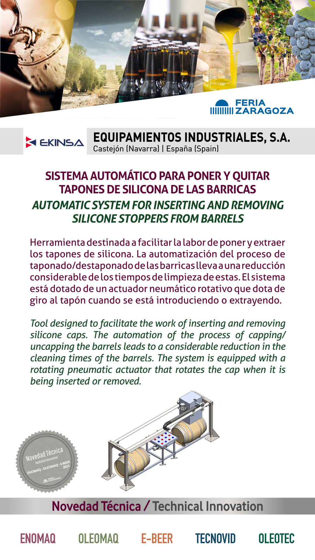 Feria de Zaragoza, aware of the fact that the factors such as the I+D+I, quality, environmental commitment, work sustainability and security must be principal and permanent activities to obtain greater competitiveness which collaborates decisively on the stable, sustainable market and economically in progress, provides the exhibitors with the Technical Innovation Contest.
