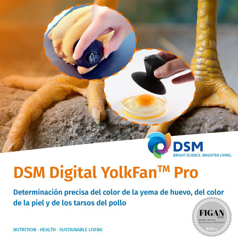 |  DSM NUTRITIONAL PRODUCTS IBERIA, S.A. |  SPAIN | DIGITAL YOLKFAN PRO: ENHANCED DIGITAL EXTENSION OF THE DSM YOLKFAN FAN TO MEASURE THE COLOUR OF EGG YOLK, SKIN AND TARSUS OF CHICKENSCharacterisation of colour in poultry products (egg and carcases) replacing conventional fans. |