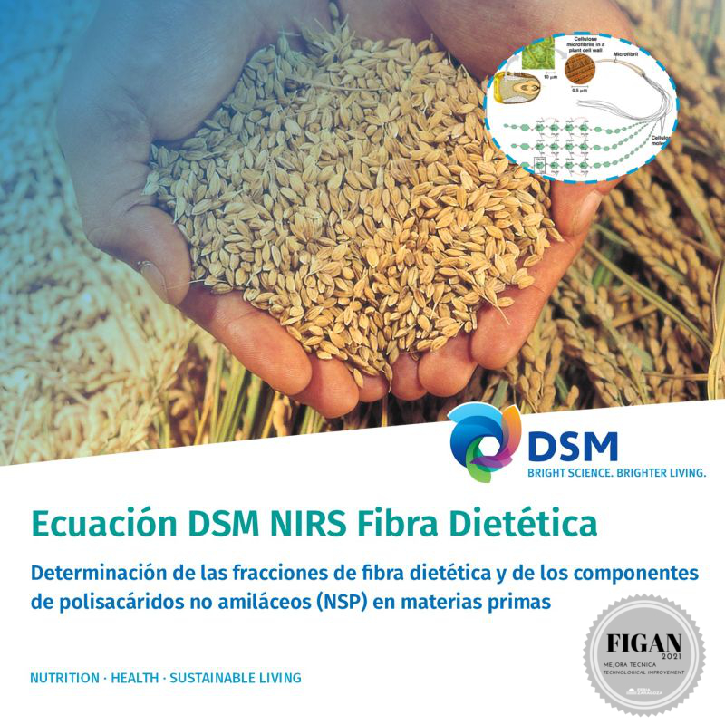 |  DSM NUTRITIONAL PRODUCTS IBERIA, S.A. |  SPAIN | DETERMINATION OF DIETARY FIBRE FRACTIONS AND NON-STARCH POLYSACCHARIDE CONSTITUENTS (NSP) IN RAW MATERIALS BY NIRS TECHNOLOGYThis is a new NIRS calibration which allows a more precise formulation of feed in terms of their dietary fibre fraction. This leads to a better overall balance. |
