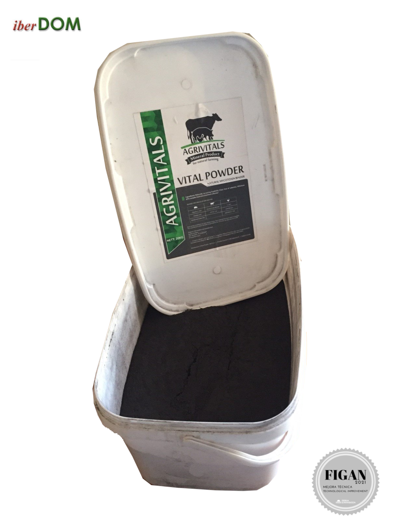 |  IBERDOM - ANDERS EMICH |  SPAIN | VITAL POWER – 100% NATURAL FOOD ADDITIVE100% natural food additive based on a compound of aluminum silicate and carbon, which regulates digestive problems and improves the absorption of nutrients in farm animals. |