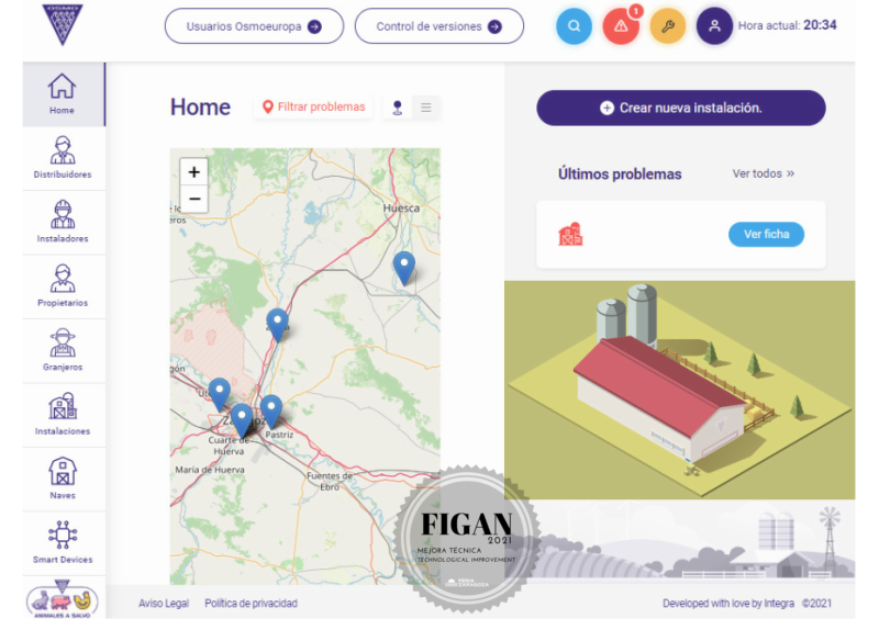 |  OSMOEUROPA |  SPAIN | INTEGRAL SYSTEM FOR THE CONTROL AND MANAGEMENT OF PIG FARMSComprehensive control system of the technological equipment of a pig farm by means of specific integrated management software. |